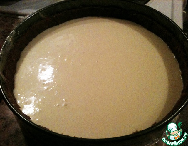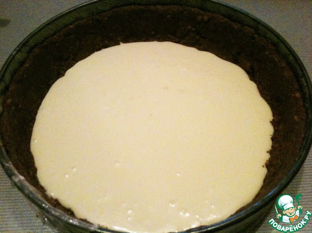 Достаем из холодильника основу и выливаем в нее начинку. Отправляем обратно в холодильник.
