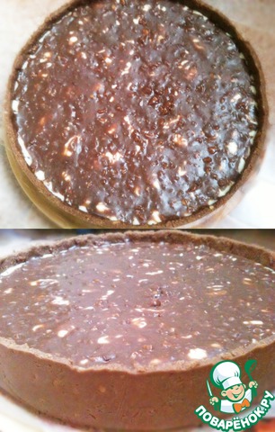 И снова повторяем пункт с приготовлением начинки) Выливаем ее поверх «карамели» и ставим обратно в холодильник застывать.
