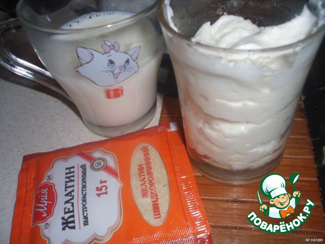 Полстакана молока доводим до кипения, растворяем в нем столовую ложку желатина.