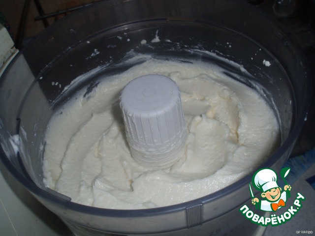 Да, забыла, творог до этого взбили с сахаром и ванилью,