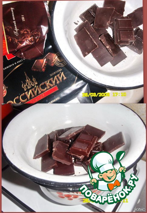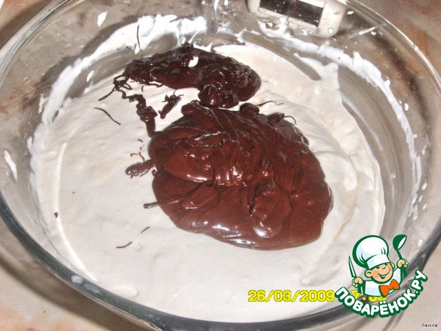 и растопленный шоколад, перемешать миксером на низкой скорости.