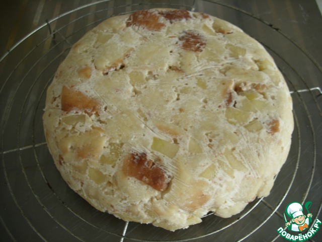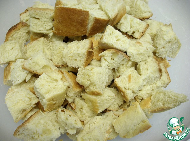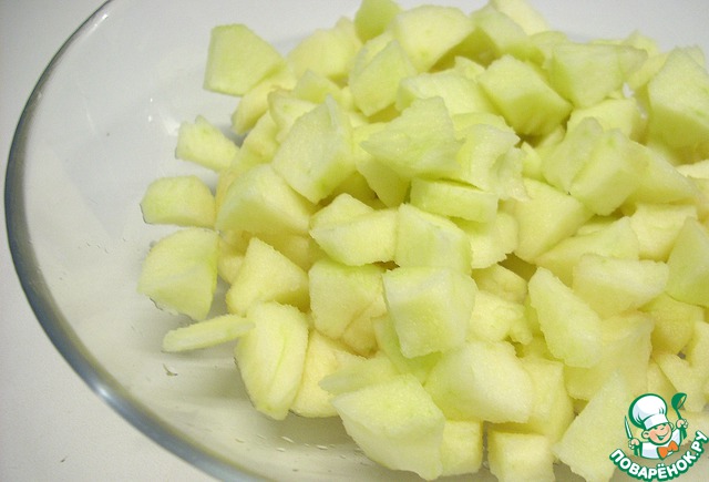 Кулич нарезать кубиками чуть больше, чем яблоки.