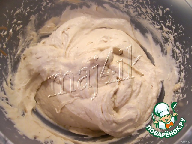 Смешать маскарпоне с сахаром, добавить банановое пюре и хорошенько перемешать.