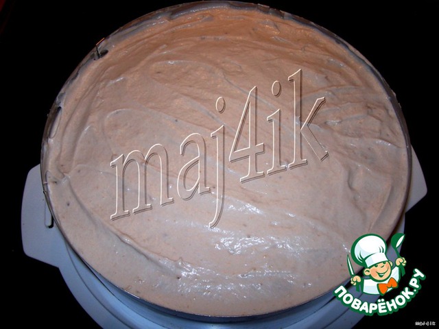 Савоярди обмакнуть в кофейной смеси и плотным слоем выложить на крем.