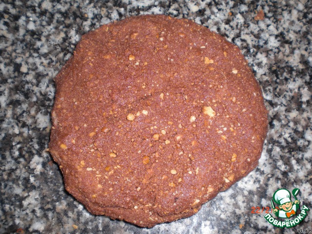 Истолочь печенье, добавить мягкое масло, какао, замесить до более-менее однородной консистенции, добавляя по чуть-чуть сгущённое молоко, где-то 2 ст.л.