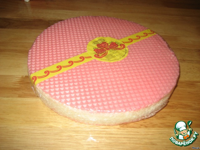 Коржи вафельные,при таком количестве,я беру 2 набора,получается 2 тортика из полученной массы.