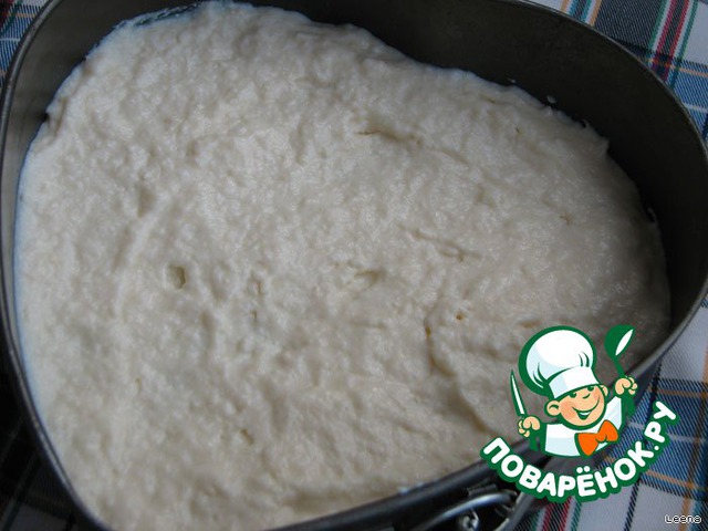Теперь, поверх слоя шариков выкладываем треть творожной массы.