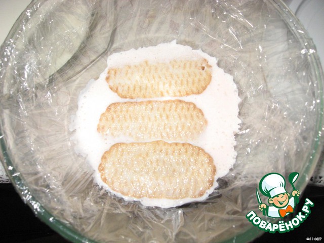 Форму выстелем пищевой пленкой.