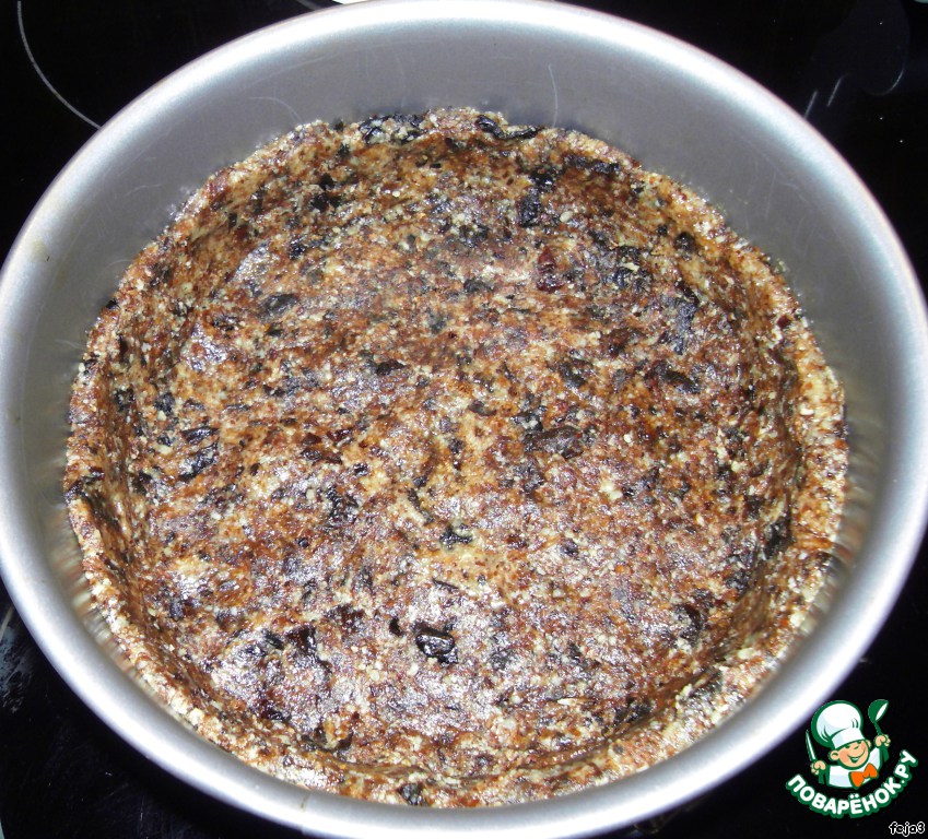 Получилась липкая масса, которую распределить в разъемной форме, делая бортики около 3-4 см. Это наша основа.