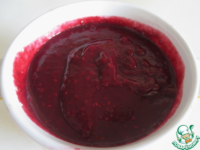 Сироп отделить от ягод и сохранить. 2/3 ягод и 50 мл сиропа пюрировать в блендере.