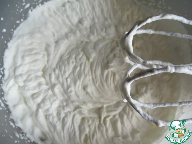 Холодные сливки взбить до крепких пиков (осторожно, не переусердствуйте, дабы не взбить их до масла).