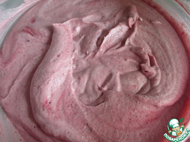 К сливкам в несколько приемов аккуратно ввести ягодное пюре, перемешивая снизу вверх.