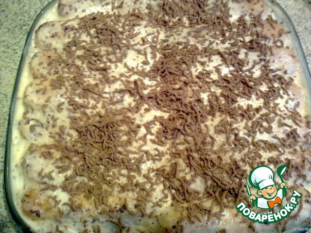 Охлаждаем в холодильнике не менее 3 часов. Достаем и посыпаем какао и тертым шоколадом.