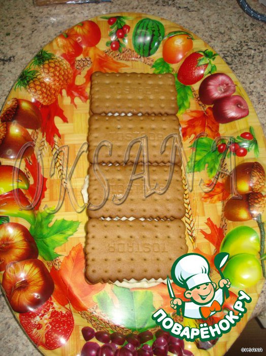 Перед тем ,как смазывать печенье кремом,нужно их обмакнуть сначала в пропитку ( вода,кофе,лим.к-та,коньяк)