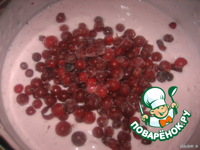 в йогурт добавляем клюкву и разведённый желатин,размешиваем
