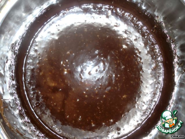 Я начала с крема, который нужно готовить за сутки до приготовления торта. На водяной бане растопить батончики Баунти или похожие на них, мои назывались "Фант", сливки и шоколад, поломанный на кусочки.