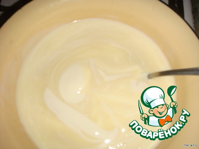 Сгущенка я смешала со сметаной и проварила буквально минут 5,т.к. побоялась что не хватит чтобы смазать все коржи.