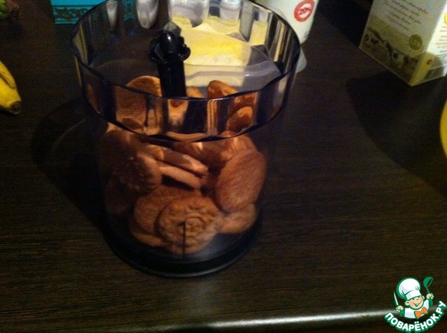 Сливочное масло растопить, добавить к крошке из печенья и хорошо перемешать
