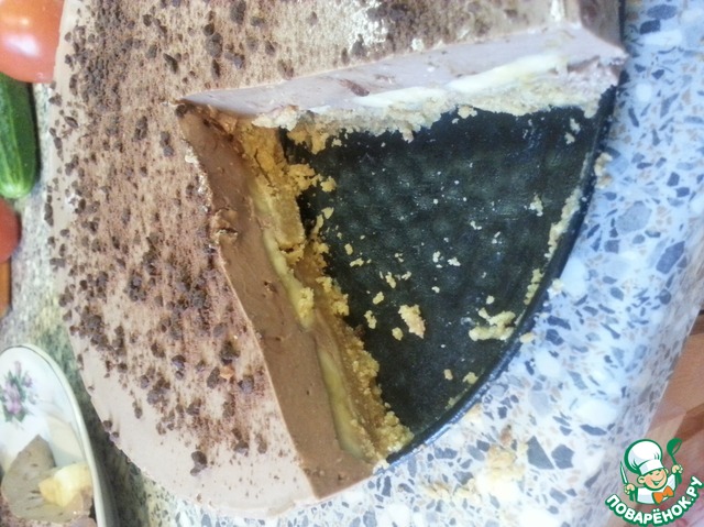 Аккуратно залить сверху шоколадной массой. Убрать в холодильник минимум на 3 часа до полного застывания.