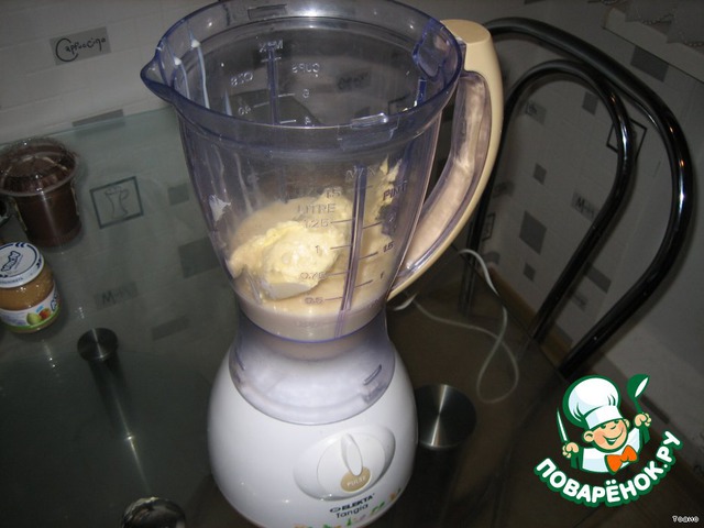 Размягченное сливочное масло взбить со сгущенкой с помощью блендера или миксера.