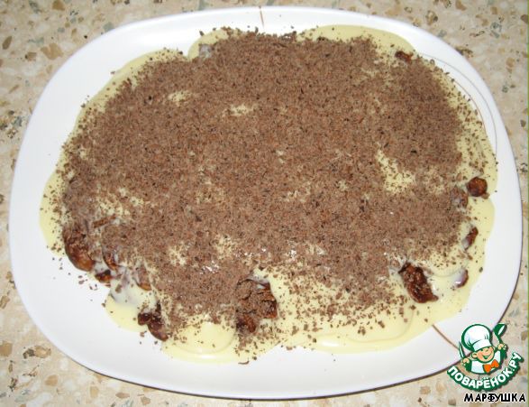 Посыпаем тертым шоколадом и отправляем в холодильник на 30 минут.