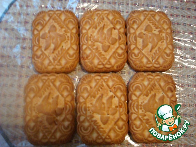 Затем берем пищевую пленку и выкладываем на неё печенье квадратом - 3х3 штуки.
