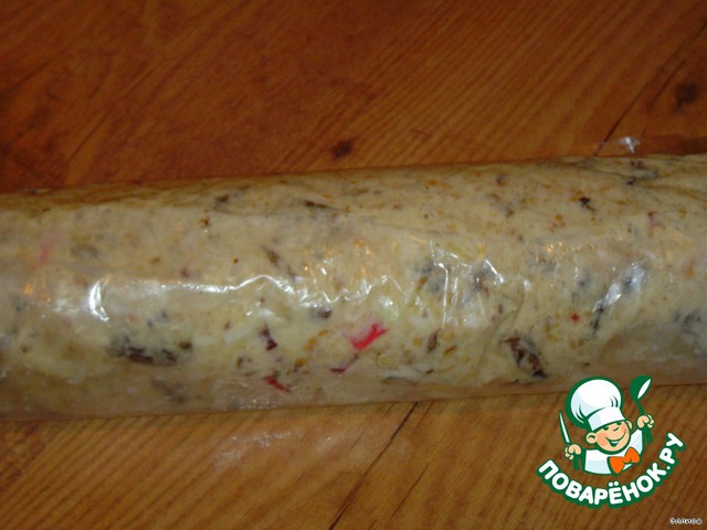Завернуть во влажную целлофановую бумагу, придав пирожному удлиненную форму. Поставить на 3-4 часа в холодильник.