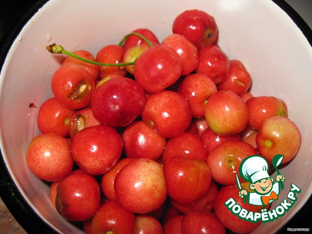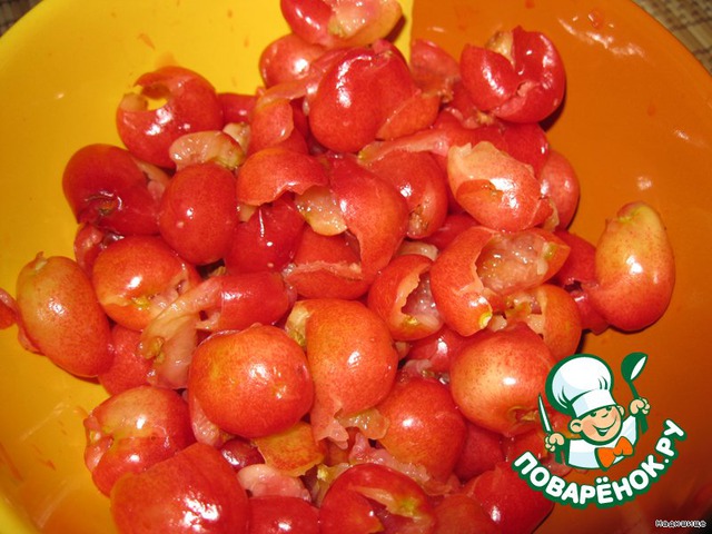 Вынимаем из черешен косточки.