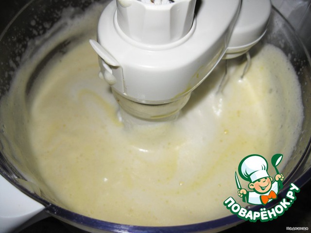 а белки взбиваем в миксере до крутой пены. И постепенно добавляем желтки с сахаром. Перемешиваем.