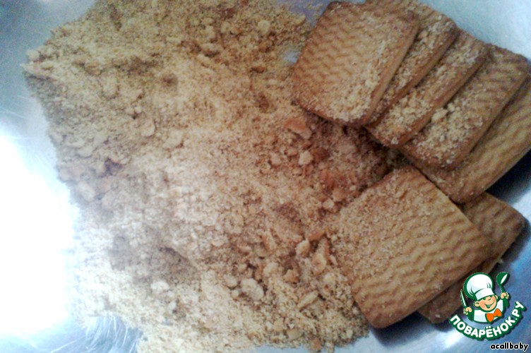 Развести Несквик (или какао) в небольшом количестве воды (должна получиться густая шоколадная кашица) и влить в печенье, добавить размягченное масло. Все хорошенько перемешать и замесить "тесто"