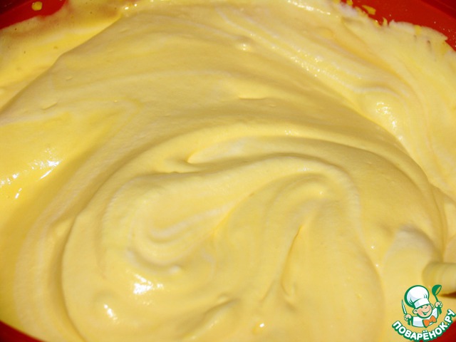 Миксером взбить желтки с половиной сахарной пудры и положить в них маскарпоне. Хорошо перемешать.