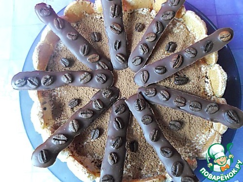 В оригинале торт украшался глазированным печеньем, ну а мне было не лень специально для этого случая сделать шоколадно-кофейные конфеты.