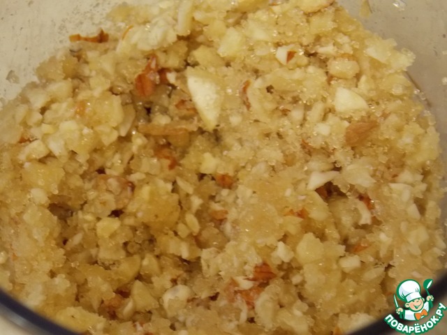 Время прошло, орехи напитались водой. В блендер кладем орехи сахар и минералку. И хорошенько смалываем.
