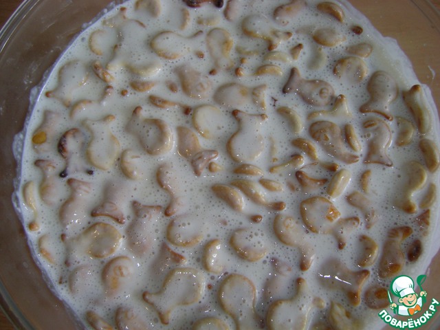 Печенье должно быть сверху (это будет низ торта). Поставить в холодильник до полного застывания на 4-5 часов.