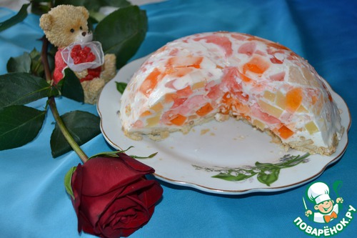 | Этот легкий, как пушинка торт не оставит никого равнодушным. Тортик получается нежным на вкус и освежающим! Желейный торт смотрится оригинально: разнообразные цветные кубики способны поднять настроение одним лишь своим внешним видом. А попробовав этот изысканный десерт, мигом забываешь об унылых буднях и погружаешься в наслаждение вкусом. Готовила первый раз, но трудностей не возникло, все элементарно. Поэтому любой мужчина сможет порадовать свою даму сердца, приложив немного усилий, любви и весеннего настроения. |