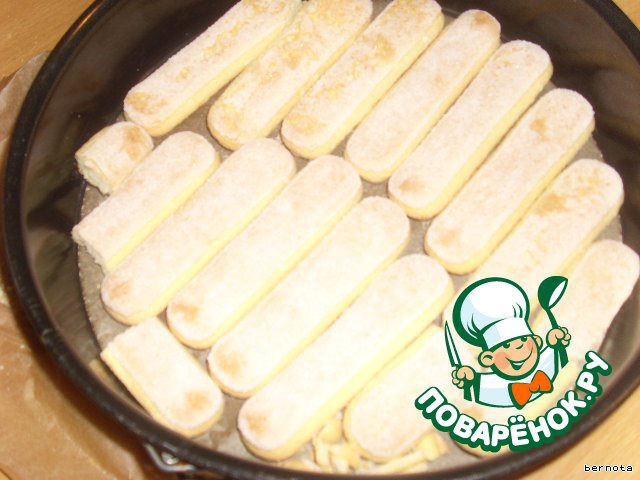 Берём форму (кому какая по душе) и укладываем бисквитики.