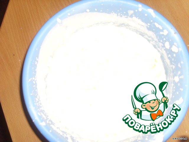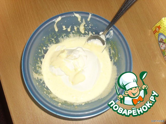 Во взбитые сливки добавляем яично-маскарпонную массу и перемешиваем снизу вверх.