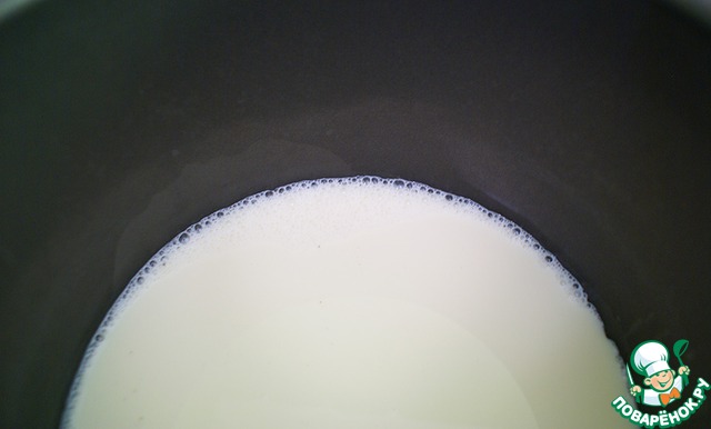 Соевое молоко (даже в нашем маленьком провинциальном городке нашлось в супермаркете на полке рядом с безлактозным молоком) смешиваем с водой и доводим до кипения.