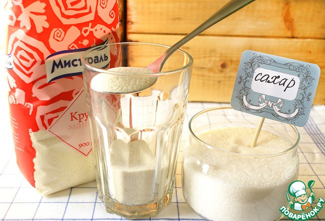 Манку смешиваем с сахаром и в молочко все сыплем потихоньку. Варим густую, сладкую кашу. Пока не остыло! Добавляем маргарин (в магазине внимательно читаем состав на упаковке и берем без животных жиров), лимонный сок и пару капель ванильной эссенции.