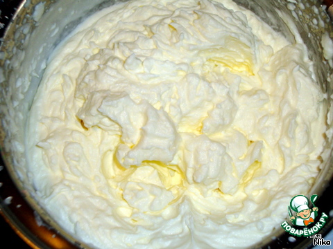 Взбить сливки с двумя ст. ложками сахара и также добавить одну часть желатина