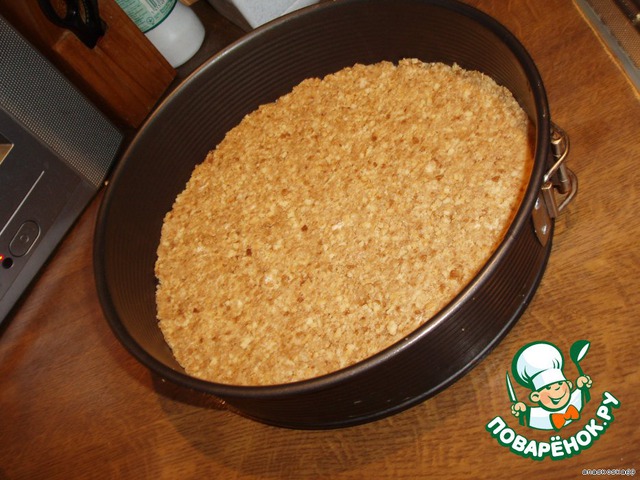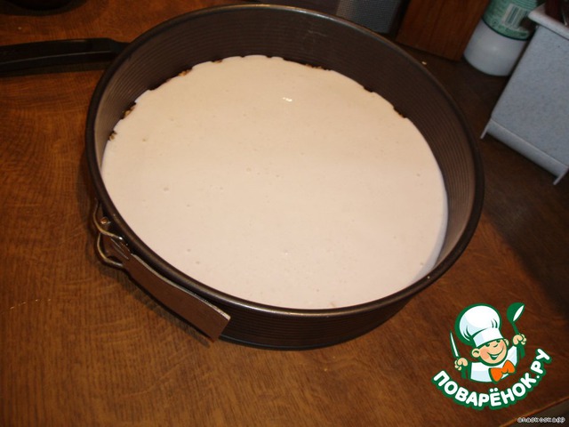 Выложить творожно-желатиновую массу на печенье и поставить в холодильник для застывания.