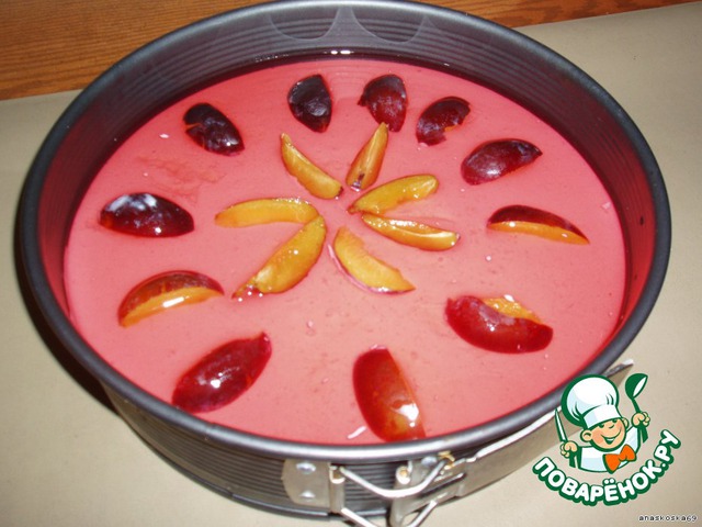 Когда застынет, залить растворенным желе, уложить сливы и опять - в холодильник для полного застывания. Приятного аппетита!!!