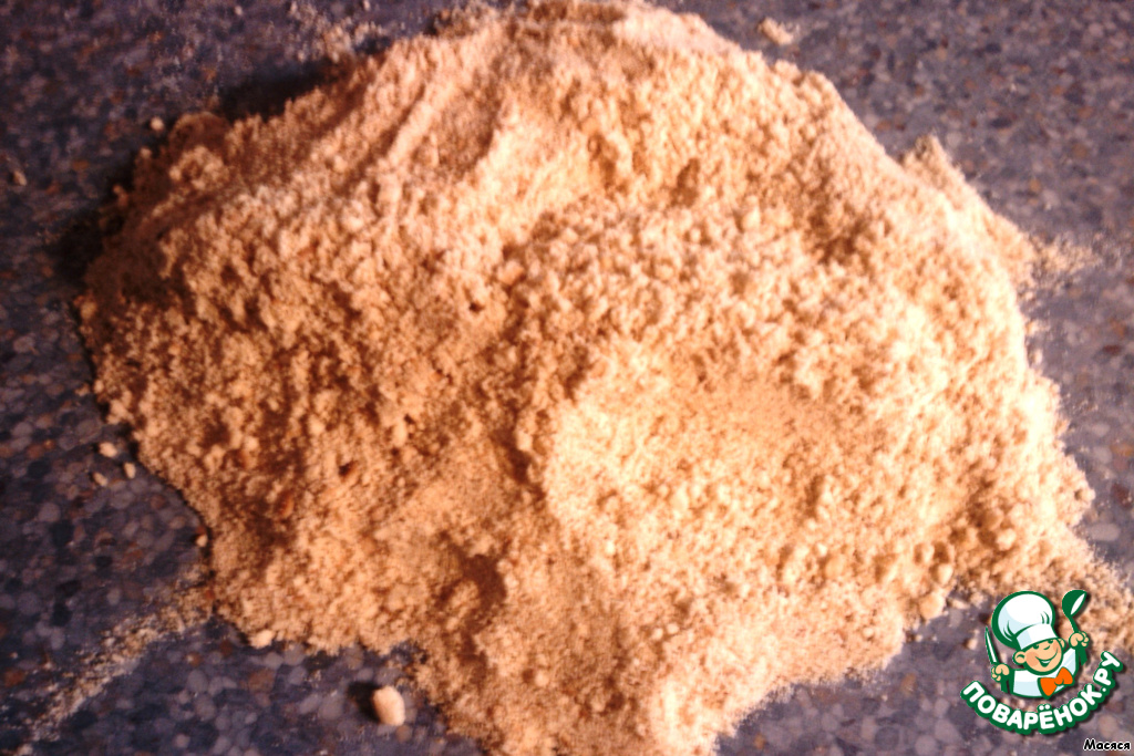 Его необходимо измельчить в крошку. Так как блендера у меня нет, я печенье поломала, сложила в пакет и размяла скалкой.