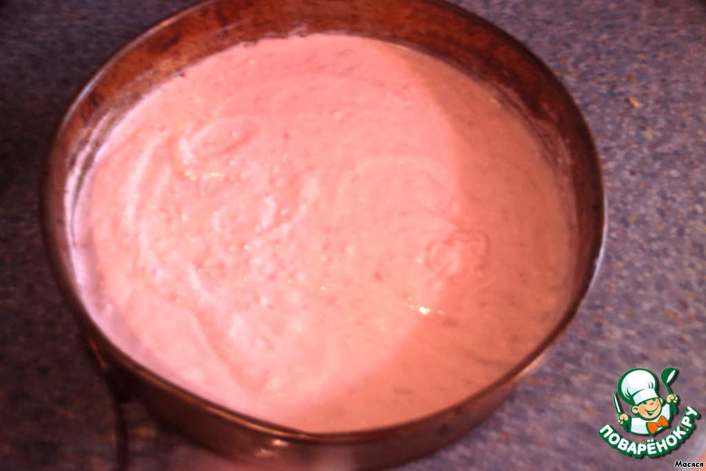 Смазываем половиной пудинга основу и отправляем в разогретую духовку на 5 минут.