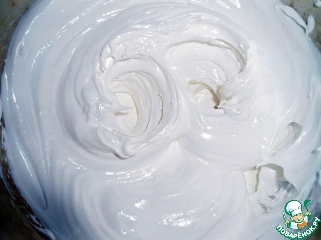 Так же, в отдельной ёмкости взбиваем яичные белки с лимонной кислотой и сахаром в пышную пену.