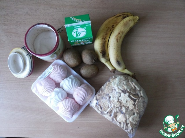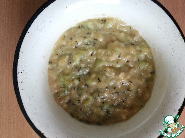 Дальше разминаем банан и киви в пюре, соединяем их вместе