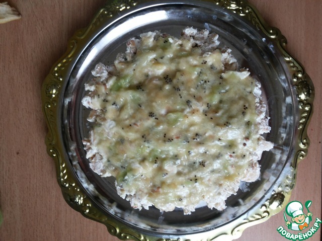Ну вот и все, собираем наш тортик) На первый слой выкладываем крекеры и промазываем пюре из киви и банана