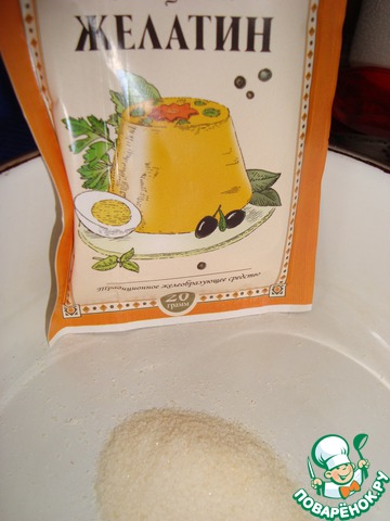 Желатин залить 1/4 стакана воды и оставить для набухания 20-30 минут.