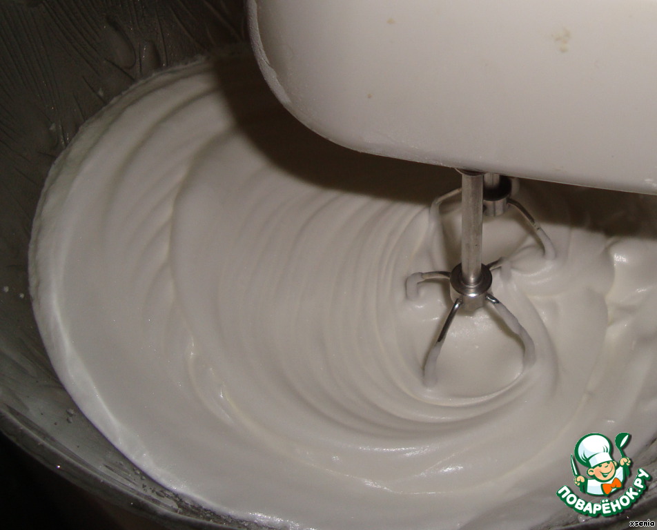 Готовим безе .Белки (лучше яйца охладить перед тем как начнете готовить)взбиваем в крутую пену .небольшими порциями начинаем вводить сахар продолжая взбивать с последней порцией сахара добавляем 0.5 ложки ванильного сахара Взбиваем до тех пор пока сахар полностью не растворится(на вкус не будут чувствоваться крупинки)и мамсса не станет плотной и блестящей