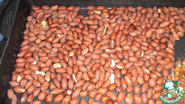 Готовим безе. Предварительно арахис высыпать на противень и просушить в духовом шкафу при t=100-125 С минут 15 (если шелуха отделяется, можно вынимать).